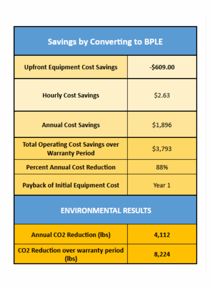 You can calculate and compare your savings using the Equipment calculator HERE. Simply download the excel sheet and follow the instructions on the first tab. The calculator produces numbers for annual costs, savings, and the long-run payoff period. (Click image for example comparison of gas powered vs. electric powered blowers.)